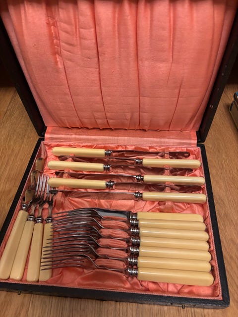 Jos hankit aterimia ja pöytähopeita käytettynä, muistathan että niitä kannattaa kiillottaa säännöllisesti. Netistä löydät runsaasti vinkkejä esimerkiksi hopean puhdistukseen. Toki vanhassa esineessä saa monen mielestä myös näkyä jonkin verran ajan patinaa. Myös oikea säilyttäminen auttaa pitämään vanhat hopeat kiiltävinä: pöytähopeat kannattaa säilyttää joko alkuperäisissä laatikoissa tai esimerkiksi puuvilla- tai minigrip-pusseissa, mieluiten valolta suojattuna.