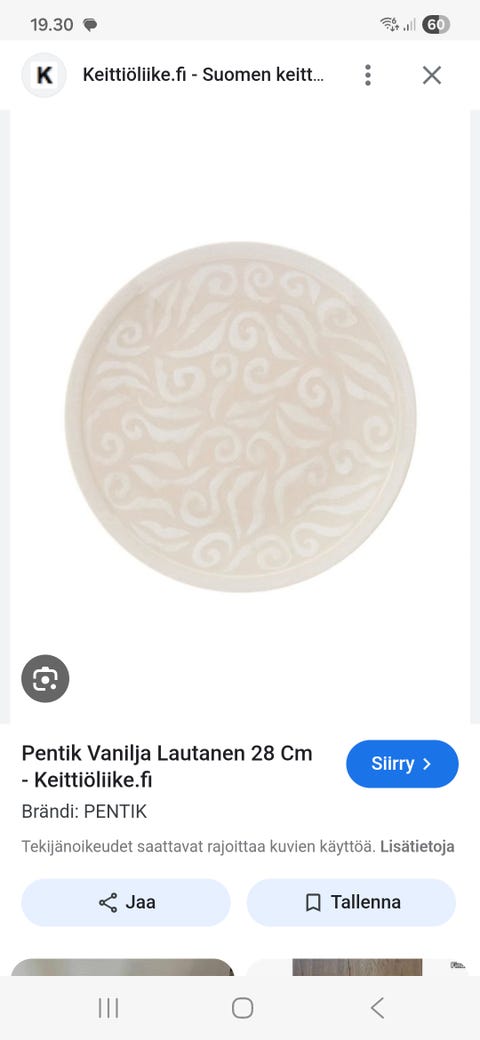 Pentik Vanilja lautasia