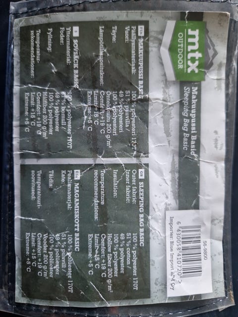 25 €Makuupussi, lähes uusi, mitat pituus 220, tilavuus 140Helsinki, Kontula - Vesala, Uusimaa9.10.Lisää suosikiksi.