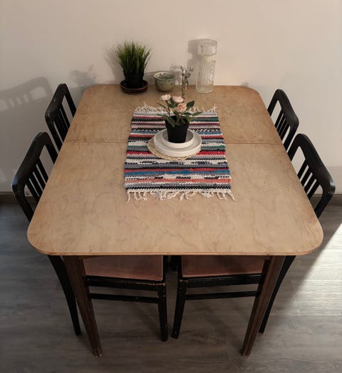 Ruokailuryhmä on usein melko arvokas hankinta ja usein kotona kovassa käytössä. Esimerkiksi taloudessa, jossa on yksi tai useampi pieni lapsi, ruokapöytään ja tuoleihin saattaa tulla naarmuja ja tahroja. Kannattaakin miettiä, voisiko käytetty pöytä olla omaan tarpeeseen riittävä ratkaisu. Ostamalla käytettyjä kodin kalusteita tuet myös kiertotaloutta!
