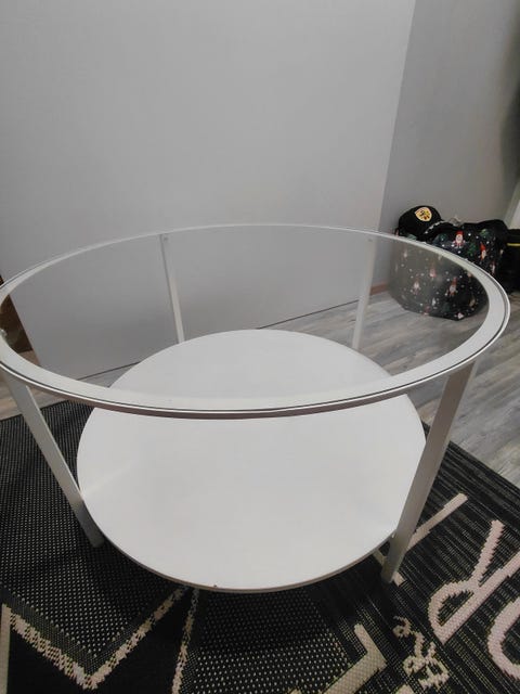 O: pyöreä lasinen sohvapöytä