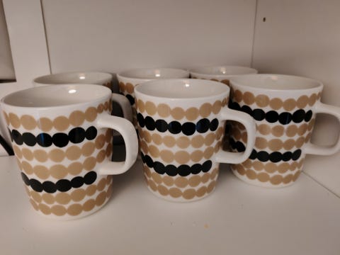 5 €Lähes käyttämättömät Lubiana mukit. 6 kpl=5 €. Mukeja 12 kplJyväskylä, Vaajakoski, Keski-Suomi1 pvLisää suosikiksi.