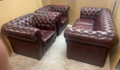 100 €Yksi kolmen istuttava ja kaksi yhden hengen nojatuolia. Punaista nahkaa. Bruno MathssonJyväskylä, Huhtasuo, Keski-Suomi16.1.Lisää suosikiksi.