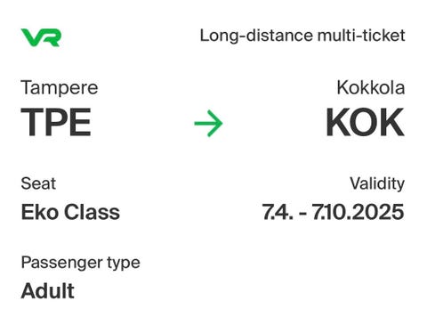 4 €Helsinki-Tampere tai Tampere-Helsinki junalippuYlöjärvi, Ylöjärvi Keskus, Pirkanmaa4 pvLisää suosikiksi.