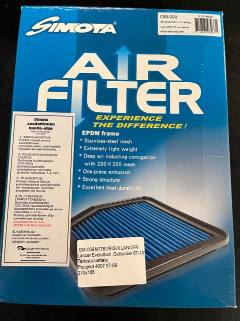 15 €Simota vapaavirtaus ilmansuodatin Mitsubishi / Citroen. Ilmainen toimitus! MitsubishiOrimattila, Orimattila Keskus, Päijät-Häme26.4.2025OutletosaLisää suosikiksi.