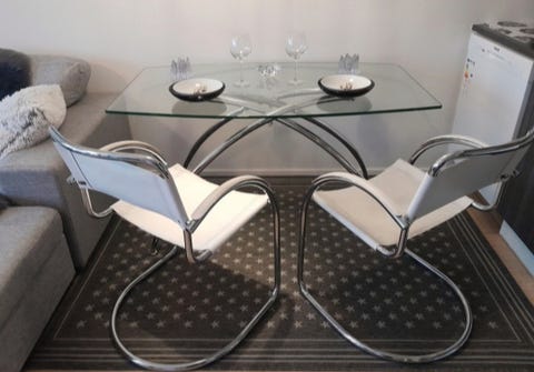 300 €lasinen ruokapöytä ja nahkatuoli 6kpl,Italialanen ruokaryhmäSysmä, Sysmä Keskus, Päijät-Häme13.11.2025Lisää suosikiksi.