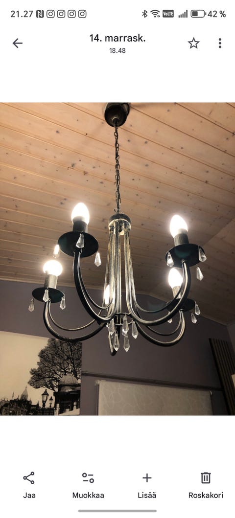 70 €Kattovalaisin kauniit kristallit keskellä vanha+lamput+pistokepää.Toimiva.Järvenpää, Jamppa, Uusimaa7.11.Lisää suosikiksi.