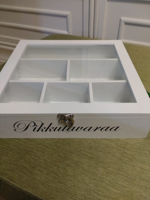 25 €Valkoinen lokerikko lasikannella, Pikkutavara, pöydälle tai seinälle.Turku, Kuninkoja-Mälikkälä, Varsinais-Suomi4.12.Lisää suosikiksi.