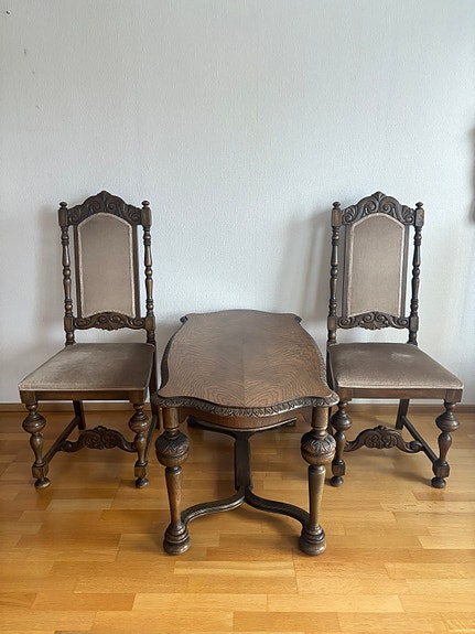 150 €Antiikkityylinen puinen pöytä ja kaksi verhoiltua tuoliaJyväskylä, Jyskä, Keski-Suomi16.3.Lisää suosikiksi.