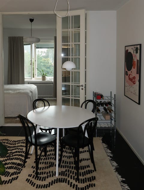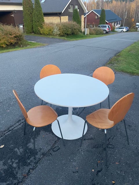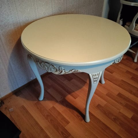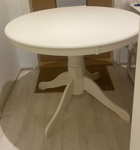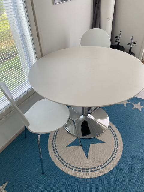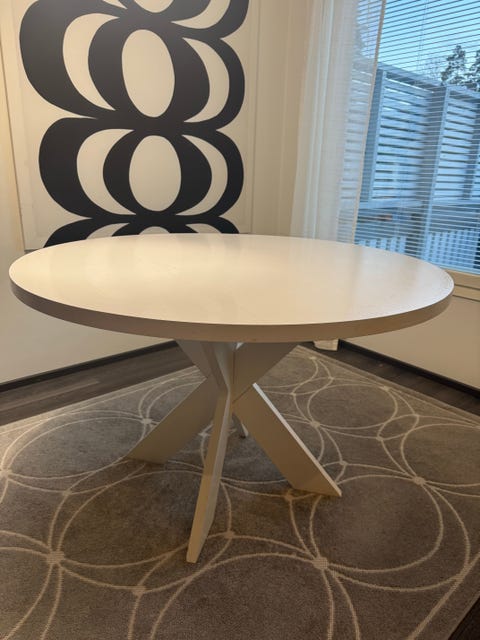 Valkoinen pyöreä ruokapöytä