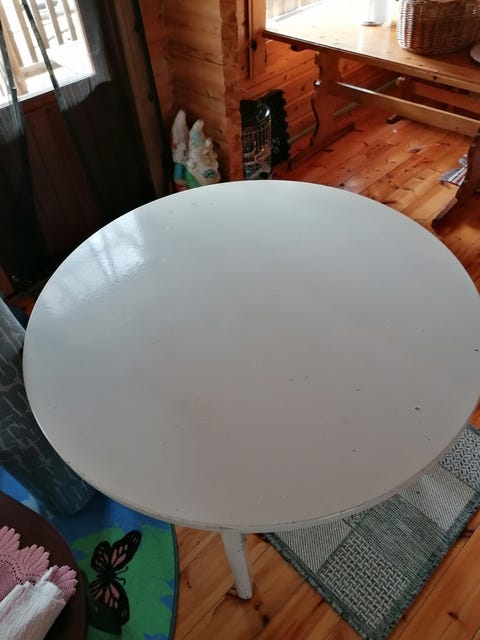 O: puinen pyöreä ruokapöytä