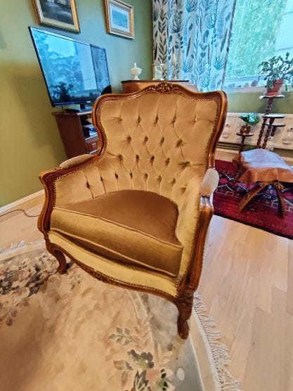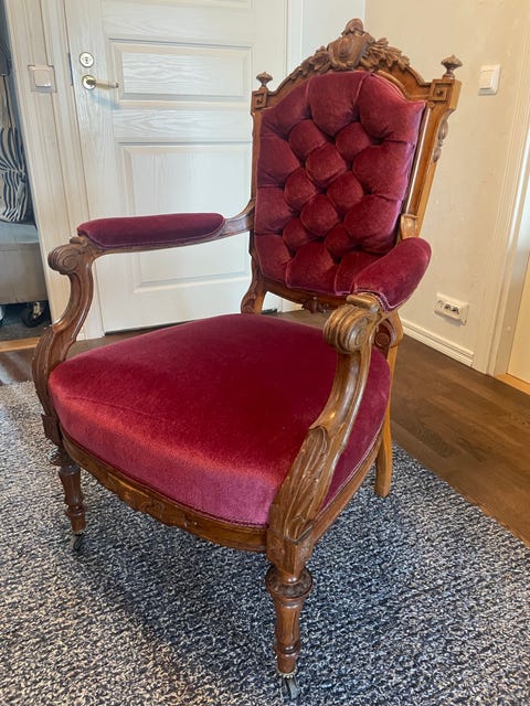 80 €Myydään kaunis, rokokootyylinen nojatuoli.Helsinki, Kontula - Vesala, Uusimaa15.9.Lisää suosikiksi.