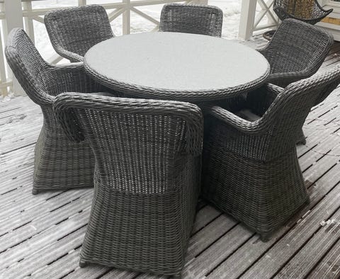 250 €Ulkokalustesetti pyöreä pöytä ja 6 tuolia harmaa polyrottinkiSipoo, Västerskog, Uusimaa21 tLisää suosikiksi.