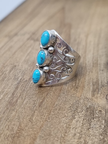 25 €Hopeasormus, turkoosi kivi ja kolme kirkasta pientä kiveä, koko n. 18,5 -19 mmKeuruu, Keuruu Keskus, Keski-Suomi26.2.Lisää suosikiksi.