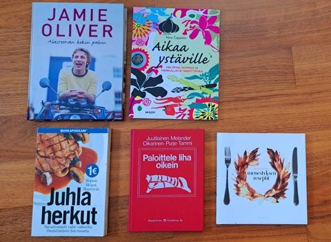Inspiraatiota kokkaamiseen edullisemmin käytetyillä resepti- ja keittokirjoilla