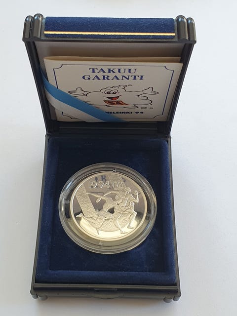18 €Hopeinen juhlaraha 50 markkaa jääkiekon mm 1982Lahti, Liipola, Päijät-Häme10.10.Lisää suosikiksi.