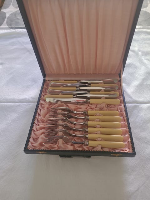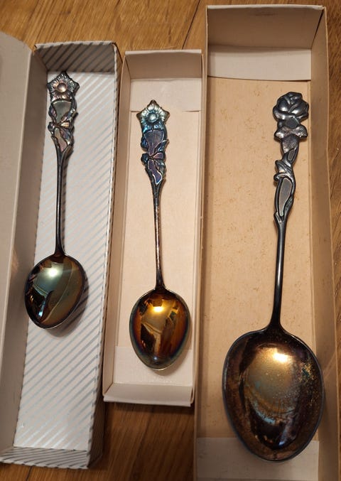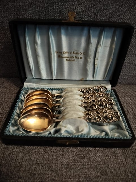 Jos hankit aterimia ja pöytähopeita käytettynä, muistathan että niitä kannattaa kiillottaa säännöllisesti. Netistä löydät runsaasti vinkkejä esimerkiksi hopean puhdistukseen. Toki vanhassa esineessä saa monen mielestä myös näkyä jonkin verran ajan patinaa. Myös oikea säilyttäminen auttaa pitämään vanhat hopeat kiiltävinä: pöytähopeat kannattaa säilyttää joko alkuperäisissä laatikoissa tai esimerkiksi puuvilla- tai minigrip-pusseissa, mieluiten valolta suojattuna.