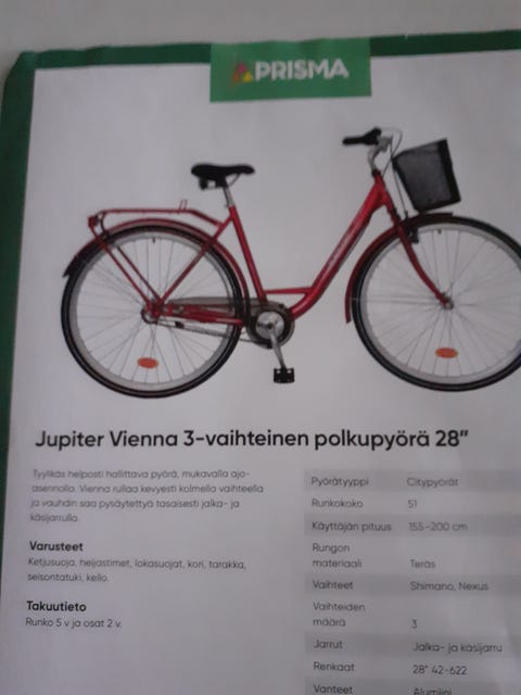 260 €Jupiter Vienna kaupunkipyörä ja Hamax Siesta-istuinHelsinki, Pohjois-Vuosaari, Uusimaa3 pvLisää suosikiksi.
