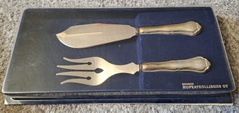 Jos hankit aterimia ja pöytähopeita käytettynä, muistathan että niitä kannattaa kiillottaa säännöllisesti. Netistä löydät runsaasti vinkkejä esimerkiksi hopean puhdistukseen. Toki vanhassa esineessä saa monen mielestä myös näkyä jonkin verran ajan patinaa. Myös oikea säilyttäminen auttaa pitämään vanhat hopeat kiiltävinä: pöytähopeat kannattaa säilyttää joko alkuperäisissä laatikoissa tai esimerkiksi puuvilla- tai minigrip-pusseissa, mieluiten valolta suojattuna.