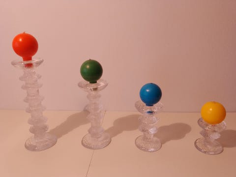 Hanki useampi erilainen, mutta samantyylinen kynttilänjalka ja tee niistä kollaasi juhlapöytään