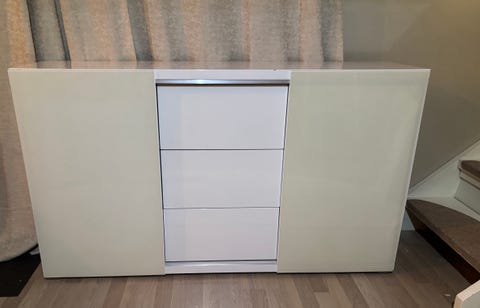 75 €Valkoinen korkeakiiltoinen lipasto – lasiovet, hyllyt ja 3 vetolaatikkoaYlöjärvi, Siivikkala, Pirkanmaa4.12.Lisää suosikiksi.