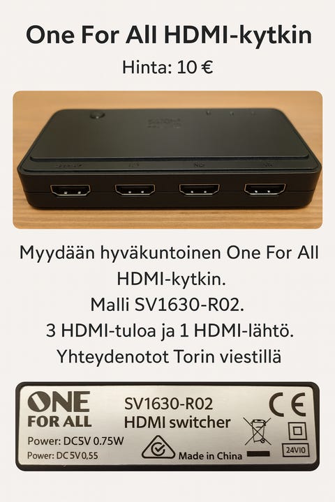 10 €ONE FOR ALL HDMI-kytkin – 3 sisääntuloa, 1 ulostuloJyväskylä, Keljonkangas, Keski-Suomi6 pvOsta hetiLiikkeessä oleva kuorma-autoToriDiiliLisää suosikiksi.