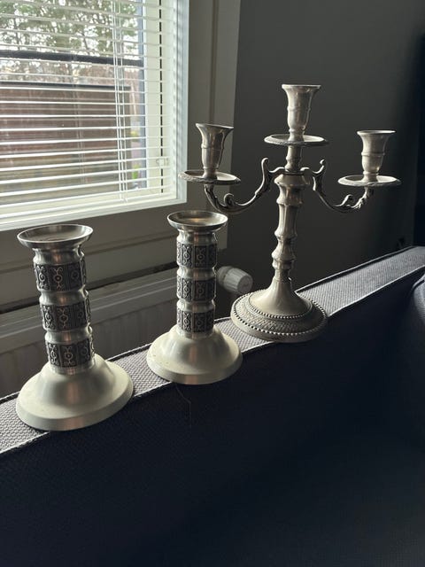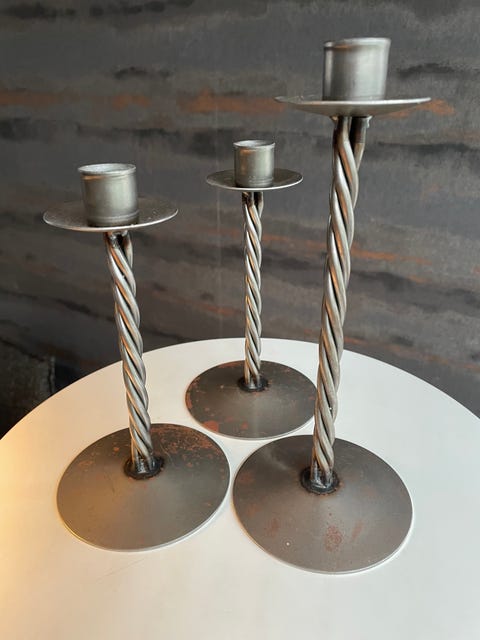 Hanki useampi erilainen, mutta samantyylinen kynttilänjalka ja tee niistä kollaasi juhlapöytään
