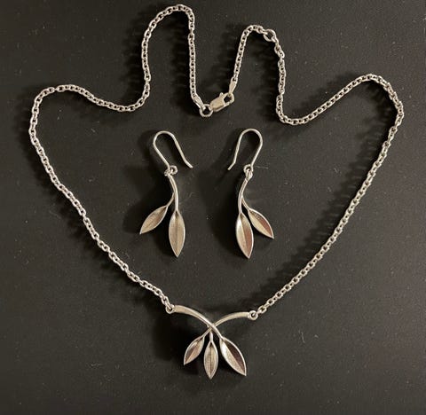 15 €Hopeinen sormus ja korvikset samaa sarjaa. Sormuksen koko 17 mm.Helsinki, Pihlajamäki, Uusimaa27.12.2025Lisää suosikiksi.