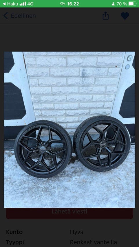 Antiikki ja taide (3)Auto-, vene- ja moottoripyörätarvikkeet (10 780)Elektroniikka ja kodinkoneet (25)Eläimet ja eläintarvikkeet (13)Koti ja sisustus (38)Lapset ja vanhemmat (43)Liiketoiminta ja palvelut (23)Piha ja remontointi (16)Urheilu ja ulkoilu (35)Vaatteet, kosmetiikka ja asusteet (29)Viihde ja harrastukset (32)