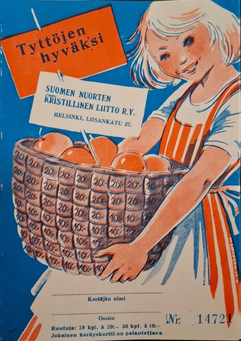 1 €Ainutlaatuinen löytö vuodelta 1951, NNKY “Tyttöjen hyväksi” keräilykorttiHelsinki, Kruununhaka, Uusimaa29.10.Lisää suosikiksi.