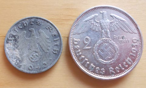 30 €NATSISAKSA , Hopeaa, 2 Reichsmark 1939, 5 Rpf HakaristiHelsinki, Viikki, Uusimaa14.11.Lisää suosikiksi.