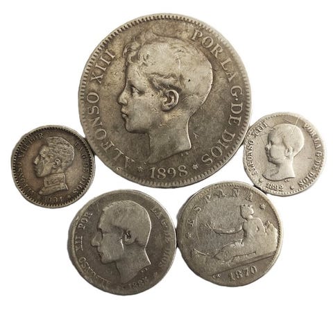 95 €Espanja. 5 Silver Coins (2x 50 Centimos + 2x 1 Peseta + 1x 5 Pesetas) - 39gHelsinki, Keskusta - Etu-Töölö, Uusimaa3 pvCatawikiLisää suosikiksi.