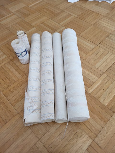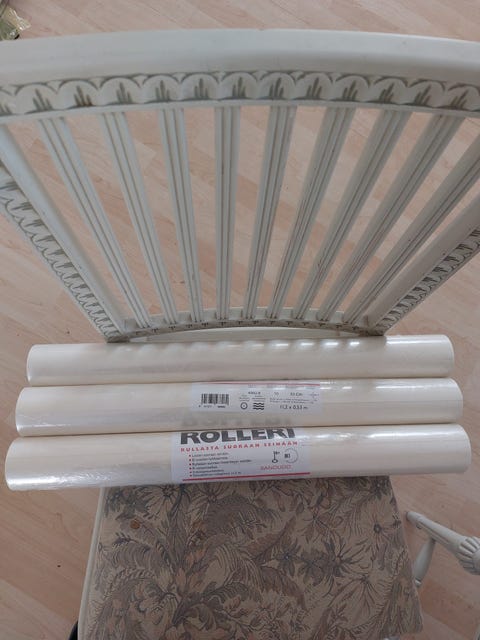 Ylijäänyt tapetti sopii myös huonekalujen päällystykseen, askarteluun ja monen kuosin seinään