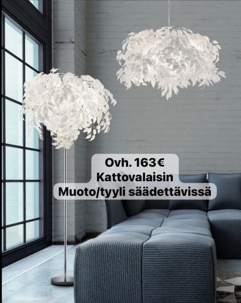 100 €Ellos Home Amber kattovalaisin valkoinen/kromi EllosHelsinki, Käpylä, Uusimaa15.11.Lisää suosikiksi.