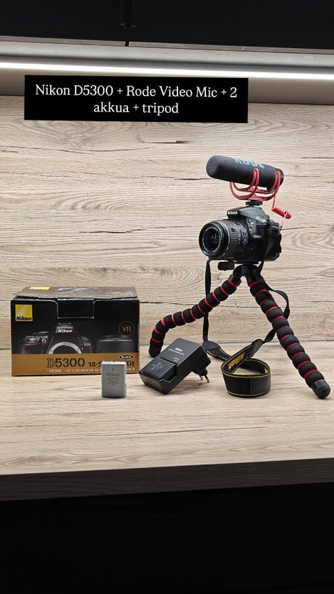 350 €Nikon D5300 + 18-55 VR II Kit + Rode Video Mic Go + 2 akkua NikonTampere, Haukiluoma-Ikuri, Pirkanmaa1 tLisää suosikiksi.