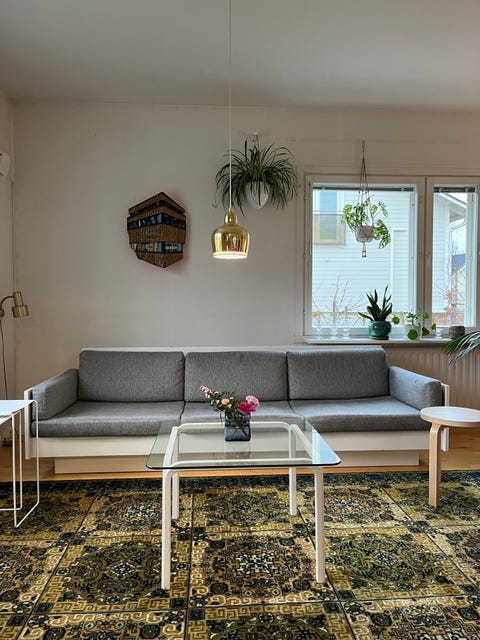 Harmaa sohva