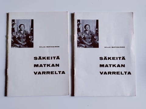 2 €Hilja Matikainen – Säkeitä matkan varrelta 2 kplNokia, Alhoniitty, Pirkanmaa21.1.Lisää suosikiksi.