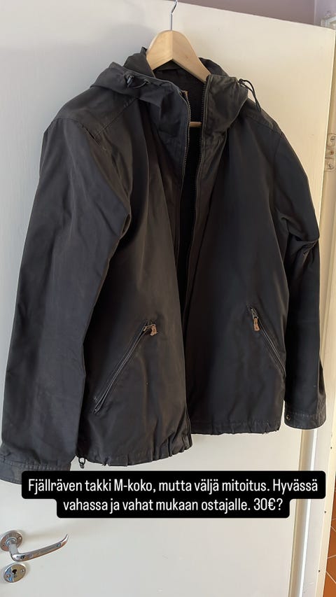 30 €Fjällräven miesten takki M musta puuvillaKoko M FjällrävenHelsinki, Itä-Pakila, Uusimaa5 minOsta hetiPaalupaikkaLisää suosikiksi.