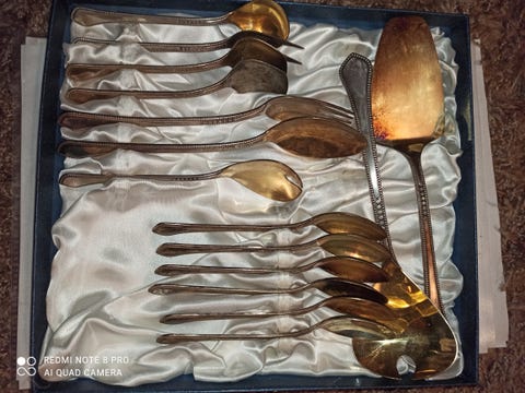 Jos hankit aterimia ja pöytähopeita käytettynä, muistathan että niitä kannattaa kiillottaa säännöllisesti. Netistä löydät runsaasti vinkkejä esimerkiksi hopean puhdistukseen. Toki vanhassa esineessä saa monen mielestä myös näkyä jonkin verran ajan patinaa. Myös oikea säilyttäminen auttaa pitämään vanhat hopeat kiiltävinä: pöytähopeat kannattaa säilyttää joko alkuperäisissä laatikoissa tai esimerkiksi puuvilla- tai minigrip-pusseissa, mieluiten valolta suojattuna.