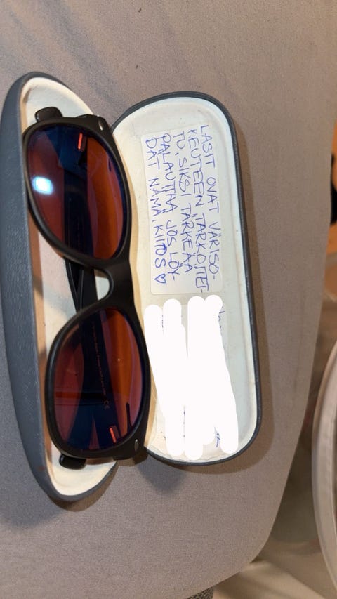 Kannattaa tarkistaa myynti-ilmoituksessa aurinkolasien merkki ja nenätyynyn materiaali