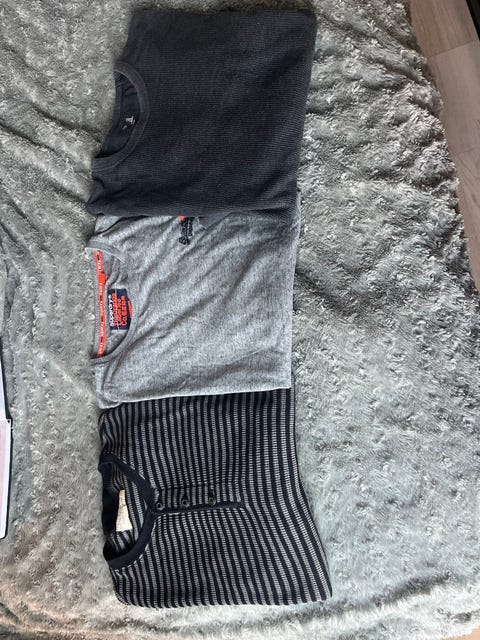 3 miesten pitkähihaista paitaa kokoa M-XL, merkit Ralph Lauren, Superdry ja GAP
