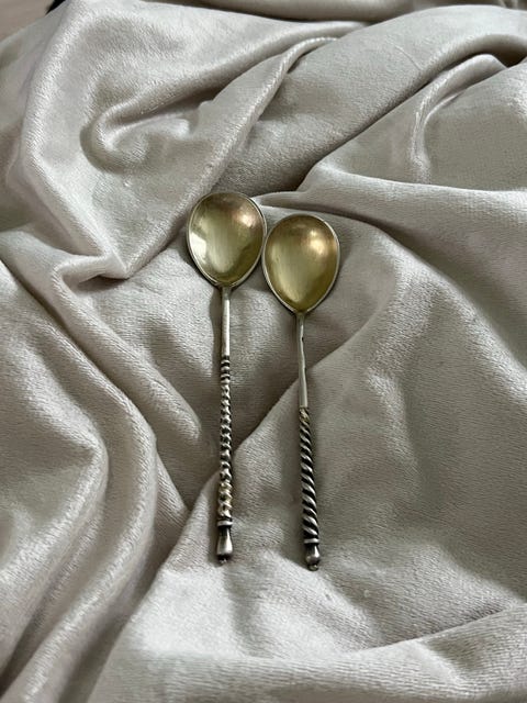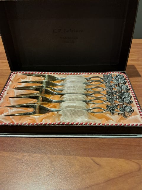 Jos hankit aterimia ja pöytähopeita käytettynä, muistathan että niitä kannattaa kiillottaa säännöllisesti. Netistä löydät runsaasti vinkkejä esimerkiksi hopean puhdistukseen. Toki vanhassa esineessä saa monen mielestä myös näkyä jonkin verran ajan patinaa. Myös oikea säilyttäminen auttaa pitämään vanhat hopeat kiiltävinä: pöytähopeat kannattaa säilyttää joko alkuperäisissä laatikoissa tai esimerkiksi puuvilla- tai minigrip-pusseissa, mieluiten valolta suojattuna.