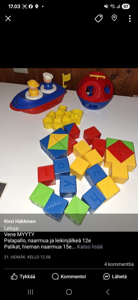 Löydä vauvan lelut edullisesti käytettynä! Torissa on 4 209 ilmoitusta, joissa myydään ja ostetaan vauvan leluja.