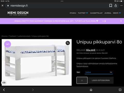 Antiikki ja taide (27)Auto-, vene- ja moottoripyörätarvikkeet (2)Elektroniikka ja kodinkoneet (3)Eläimet ja eläintarvikkeet (1)Koti ja sisustus (785)Lapset ja vanhemmat (2 107)Liiketoiminta ja palvelut (3)Piha ja remontointi (6)Urheilu ja ulkoilu (14)Vaatteet, kosmetiikka ja asusteet (13)Viihde ja harrastukset (129)