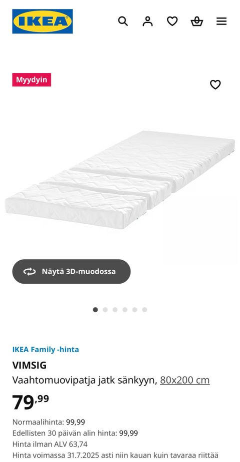 Annetaan(VARATTU) Annetaan Ikea Joustinpatja 140x200 cm IKEAVantaa, Tikkurila, Uusimaa5 pvLisää suosikiksi.