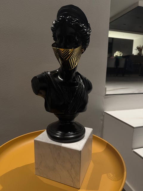 500 €Koristepatsas musta kulta kasvomaski marmorialustallaHelsinki, Kulosaari, Uusimaa8.11.Lisää suosikiksi.