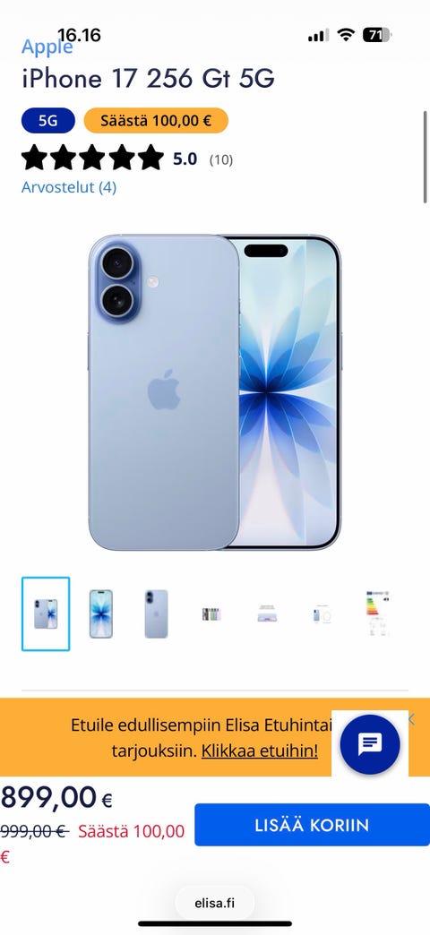 550 €Apple iPhone 17 älypuhelin 256 GB sininen 256 GB AppleOulu, Rajakylä, Pohjois-Pohjanmaa3 pvLisää suosikiksi.