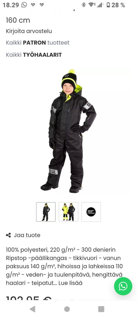 Talvella pienten lasten läheisillä voi ollakin kuumat oltavat, ainakin eteisessä pukiessa: hikipisarat tippuvat otsalta, kun lapselle pitää pukea villahaalari, villasukat, kintaat, pipo tai myssy ja lopulta vielä ulkovaatteet ja talvisaappaat. Ulkovaatteista toppahaalari on usein nopeampi pukea kuin erillinen toppatakki ja -housut, eikä lumi mene helposti sisälle. Myynti-ilmoituksesta kannattaa katsoa talvihaalarin tai muun ulkovaatteen kunto ja esimerkiksi se, miten hyvin hihansuut ja lahkeet saa kiristettyä, onko vaatteessa monta heijastinta ja onko se vedenpitävä.