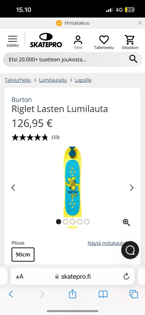 Lumilauta voi olla merkittävä investointi, ja varsinkin jos taloudessa on useampi lautailija, uusien välineiden hankkiminen voi olla todella kallista. Torista löytyy usein myös hyviä lasten lumilautoja. Kun ostat käytettyä, voit säästää merkittävästi rahaa ja tuet samalla kiertotaloutta. Kun olet laittamassa omaa lumilautaasi kiertoon Torissa, ilmoitathan tarkkaan tuotteen pituuden ja kunnon.