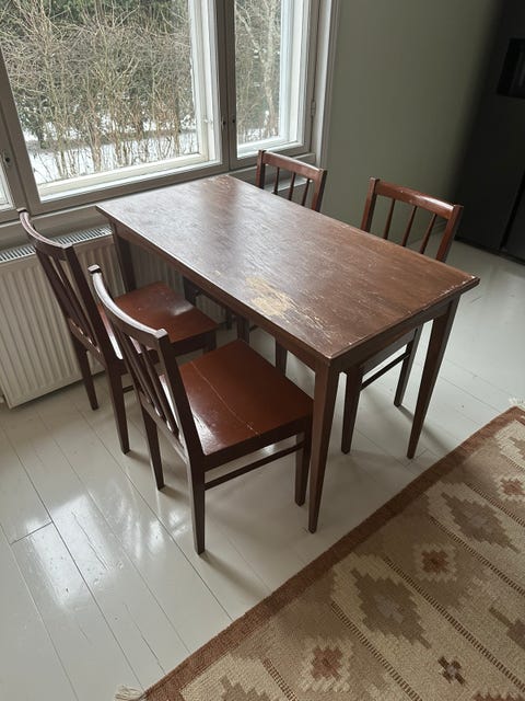 Ruokailuryhmä on usein melko arvokas hankinta ja usein kotona kovassa käytössä. Esimerkiksi taloudessa, jossa on yksi tai useampi pieni lapsi, ruokapöytään ja tuoleihin saattaa tulla naarmuja ja tahroja. Kannattaakin miettiä, voisiko käytetty pöytä olla omaan tarpeeseen riittävä ratkaisu. Ostamalla käytettyjä kodin kalusteita tuet myös kiertotaloutta!